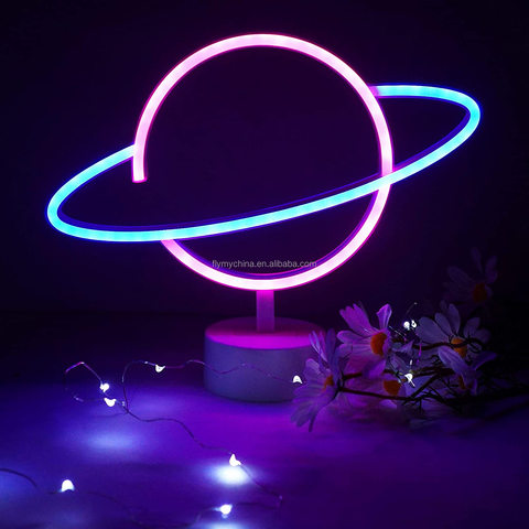 Lampada al Neon a LED ellittica a forma di pianeta insegna di terra luce al Neon batteria lampada da parete decorativa per la casa illuminazione della stanza della festa di natale